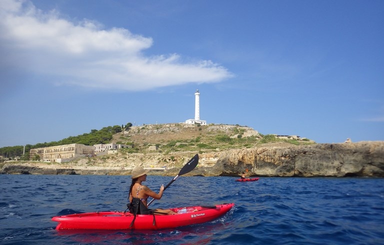 Santa Maria di Leuca is the last inhabited center of the extreme southern part of Salento, the coast is characterized by high cliffs and landscapes of high naturalistic interest. The excursion allows you to navigate on performing kayaks and to observe the historical and artistic notes of the urban center directly from the sea, besides you will be able to enjoy the spectacular and spectral places during the visit in the caves with a swim stop.