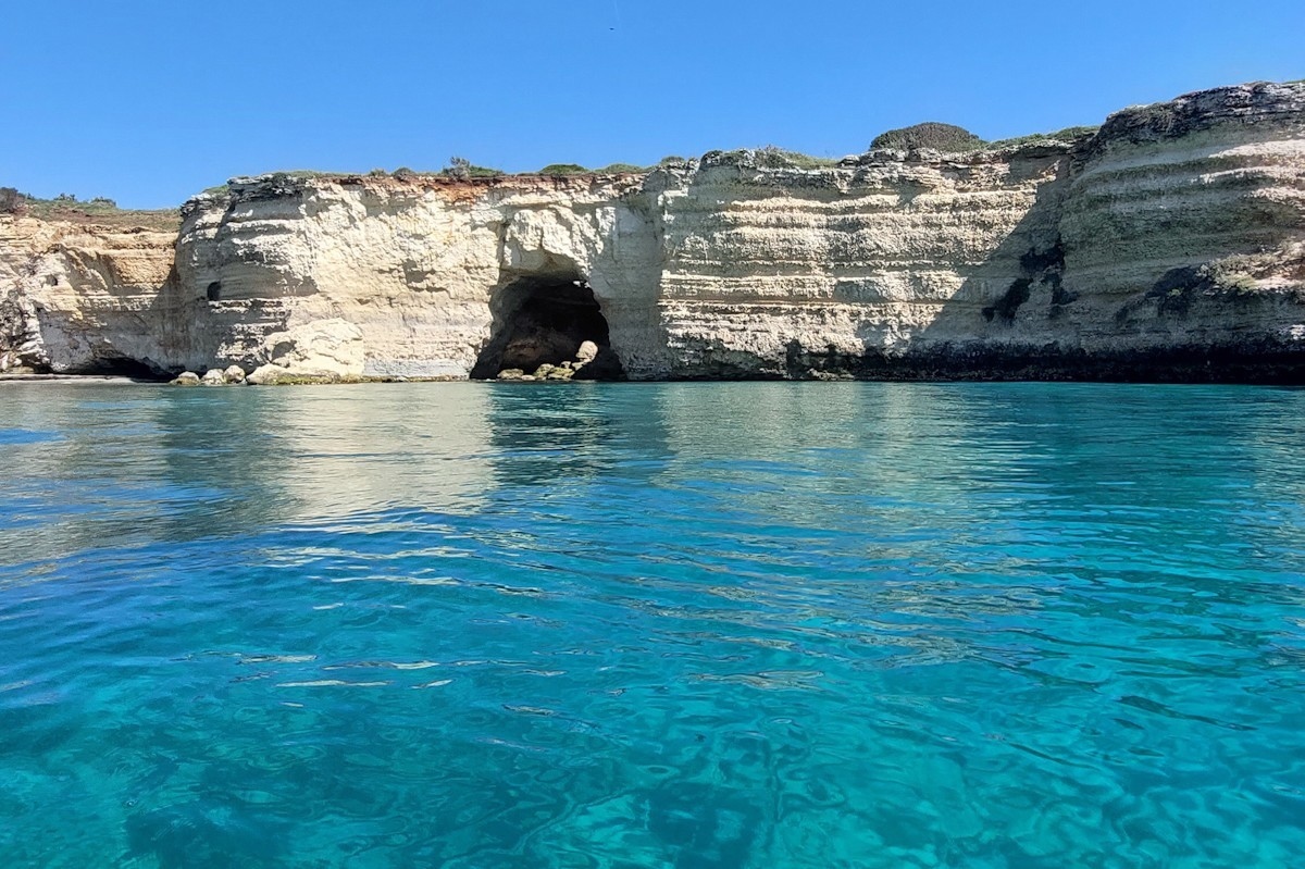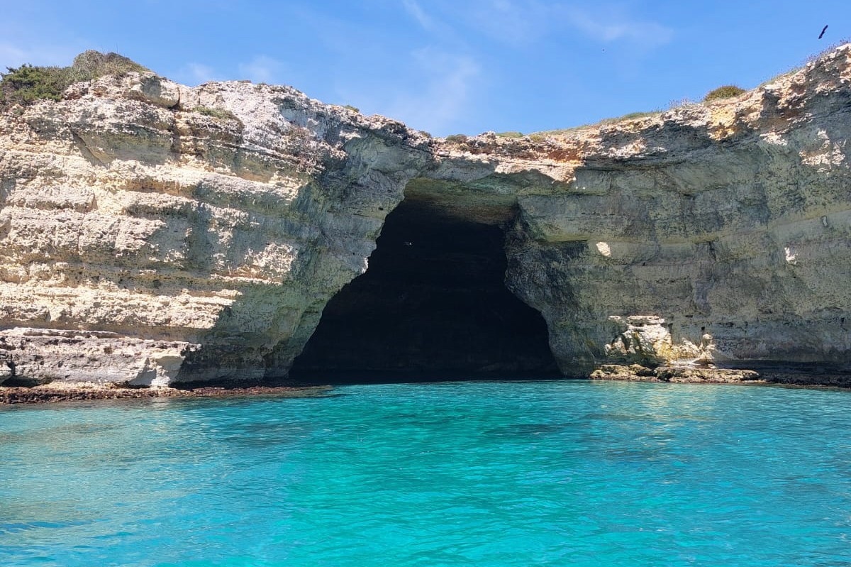 Dal Porto di Otranto costeggeremo la grotta Monaca sino a Baia del Mulino d'Acqua, una spiaggia esclusiva riparata dal vento di maestrale/tramontana, uno specchio d'acqua cristallino incastonato in una piccola insenatura naturale a fondale sabbioso