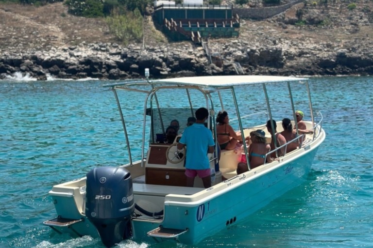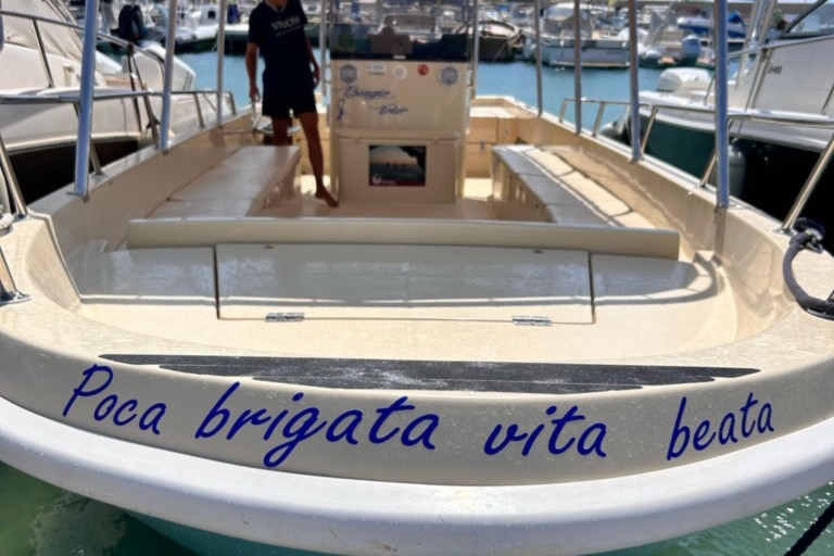 Si parte dal porto con la nostra barca nuova da 9 metri che trasporta massimo 12 persone,motore 300 cv, completa di cuscineria e tendalino