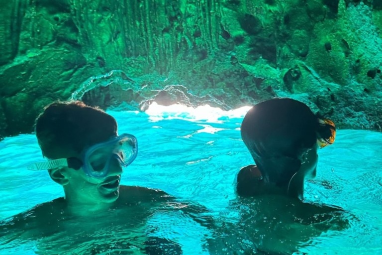 - tre soste bagno, durante le quali offriamo maschere pinne per chi volesse fare snorkeling e giubbottini nel caso qualcuno non sappia nuotare;