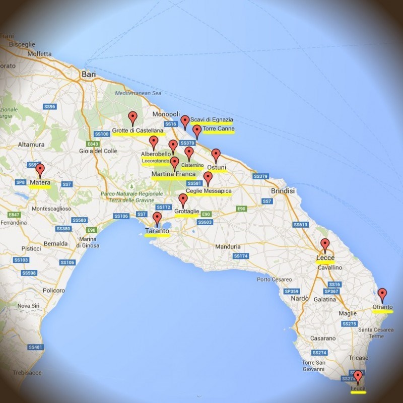 Ogni percorso è articolato in tappe con la visita di trulli, masserie, castelli, torri marine, parchi e riserve; ci sono i momenti enogastronomici, le visite a caseifici, cantine, frantoi oleari, panifici, pastifici, e i laboratori dedicati alla cucina e all’artigianato. Insomma è l’esperienza che predomina ogni avventura dei nostri tour.
